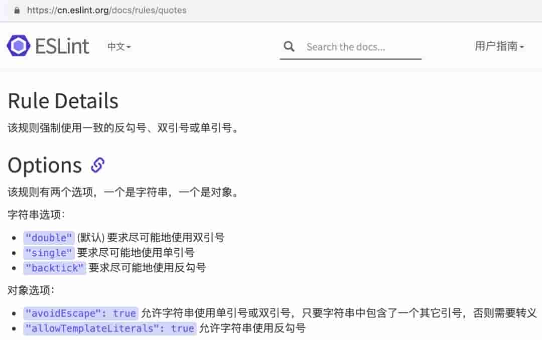 我们看下 quotes 规则,根据官网详情,它支持字符串和对象两个配置项。