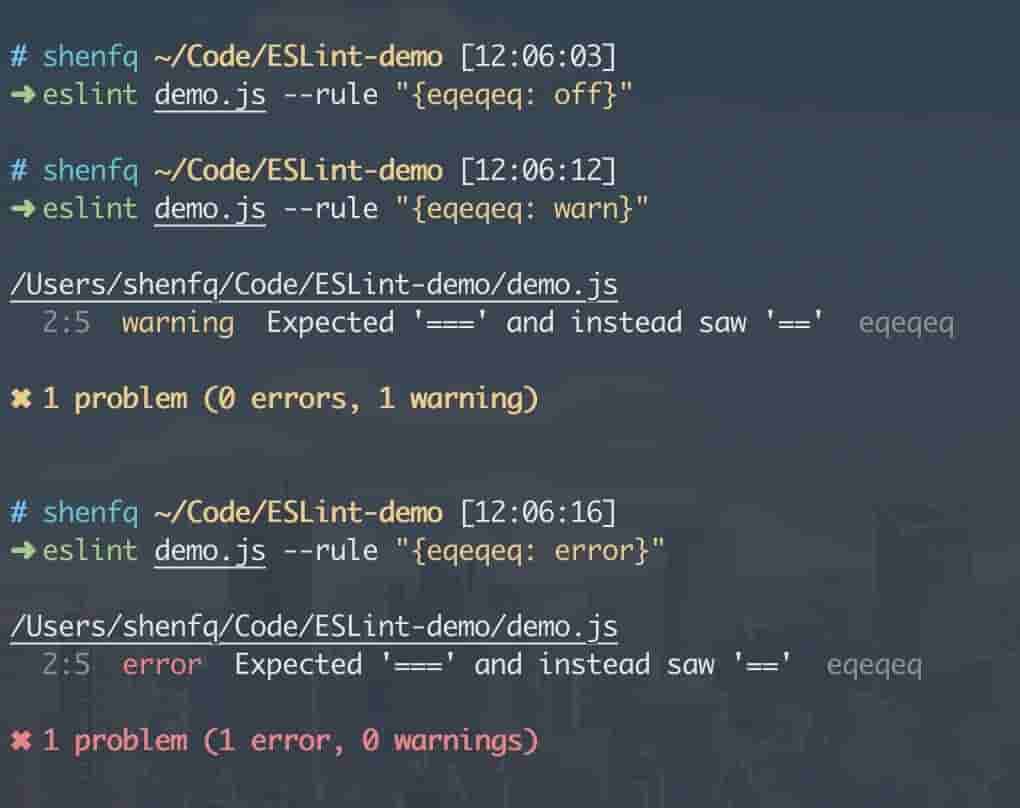 这里使用了命令行的配置方式,假如你只想对单个文件进行某个规则的校验即可以使用这种方式。
