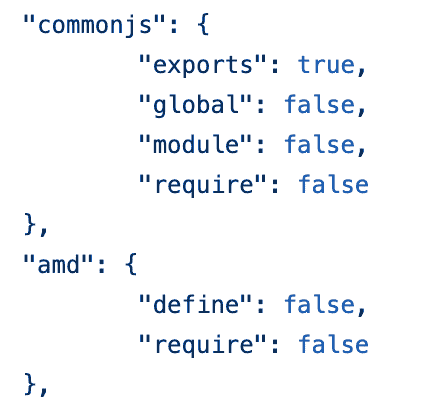 { "env": { "amd": true, "commonjs": true, "jquery": true }}