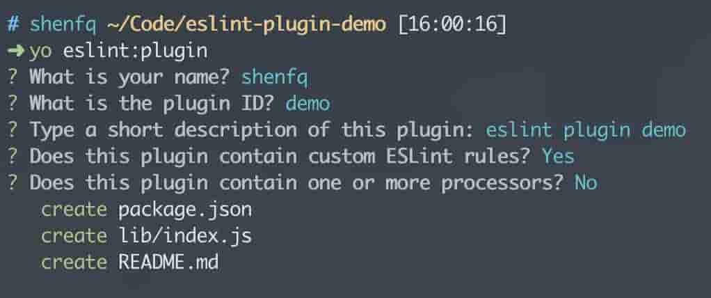 # 安装模块npm install -g yo generator-eslint# 创立目录mkdir eslint-plugin-democd eslint-plugin-demo# 创立模板yo eslint:plugin