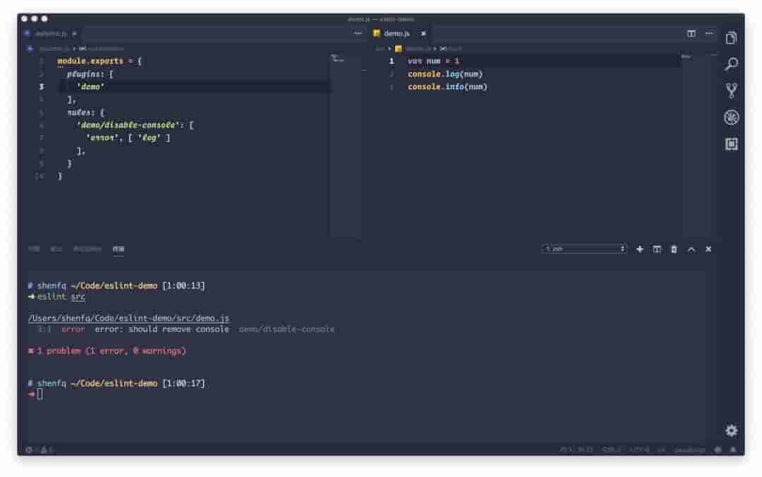 说了那么多,还是来看下有点实际意义的,ESLint 究竟是如何使用的。