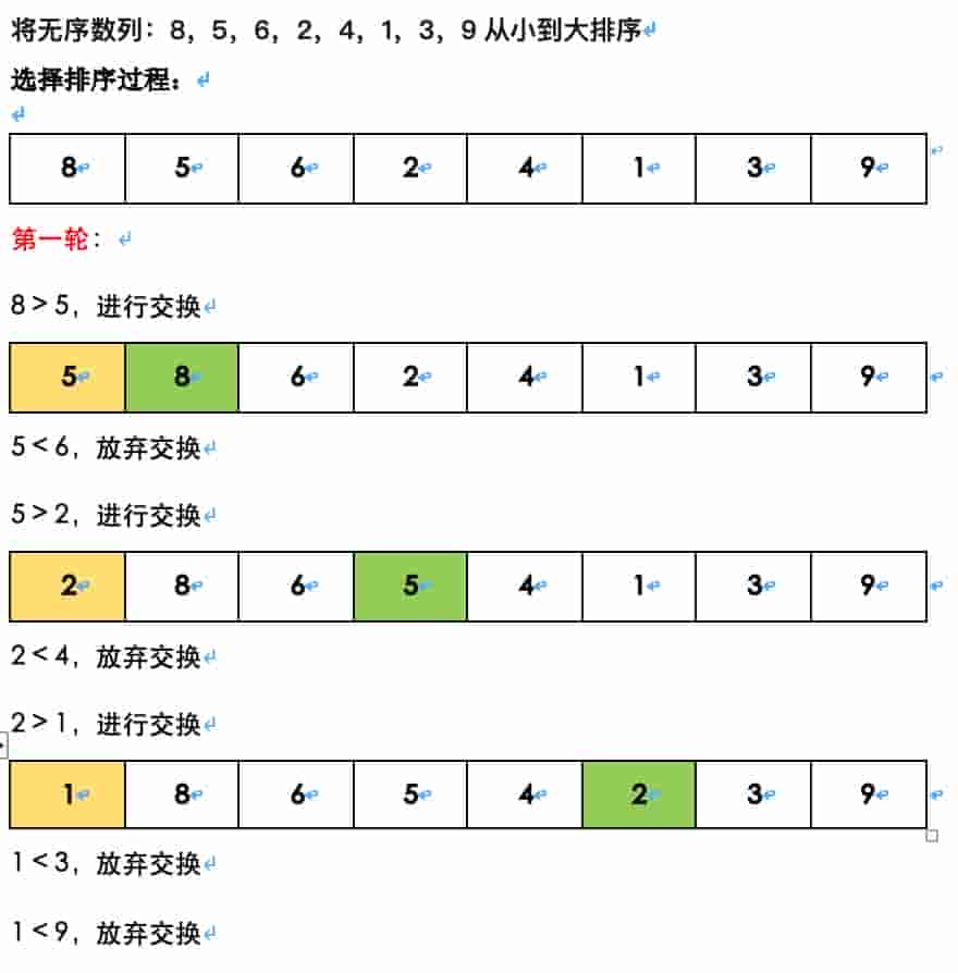 选择排序是给每个位置选择当前元素最小的,比方给第一个位置选择最小的,在剩余元素里面给第二个元素选择第二小的,依次类推,直到第n-1个元素,第n个元素不用选择了,由于只剩下它一个最大的元素了。那么,在一趟选择,假如一个元素比当前元素小,而该小的元素又出现在一个和当前元素相等的元素后面,那么交换后稳固性就被破坏了。比较拗口,举个例子,序列5 8 5 2 9,我们知道第一遍选择第1个元素5会和2交换,那么原序列中两个5的相对前后顺序就被破坏了,所以选择排序是一个不稳固的排序算法。