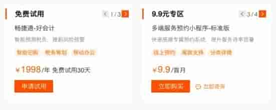 从平台整体来看,集优质产品、多端服务、企业权益为一体,集合了一方&三方优质应用产品,包含域名、商标、公司注册、企业建站等8大分类。并且提供免费试用专区以及爆款专区处理初创用户初期创业难的问题。