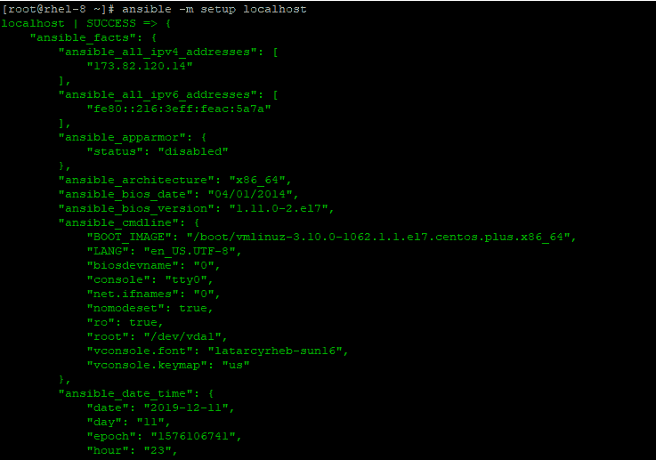 要获取有关任何系统的facts,只要使用安装模块,如下面的命令所示: