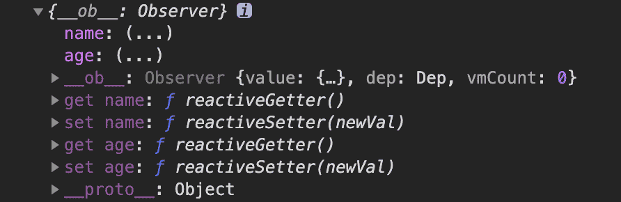 中随意写了一个对象,打印出来之后可以看到,这个对象中多了get xxx