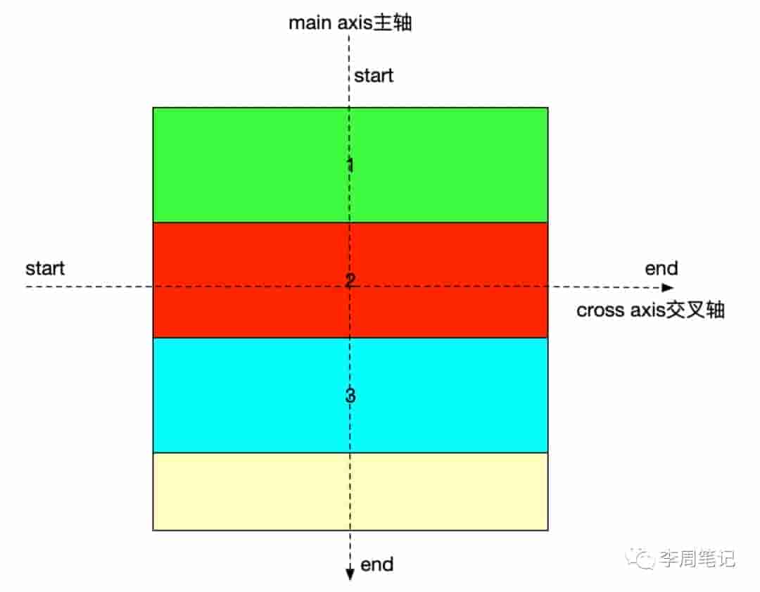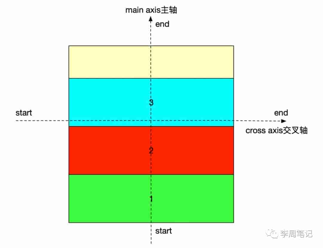 设置为column时,相当于把主轴和交叉轴进行了交换,整体布局以垂直方向显示。