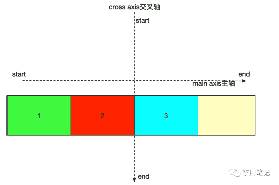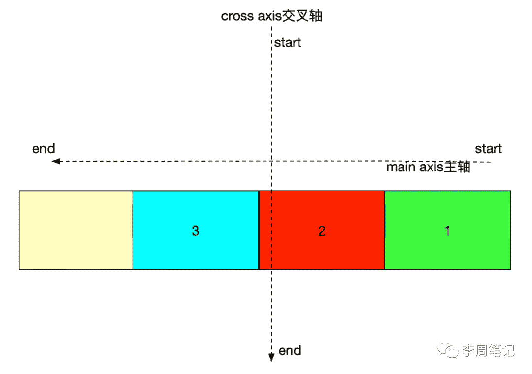决定了主轴方向上items对齐的方式,可取值: flex-start、flex-end、center、space-around、space-evenly和space-between。flex-start、flex-end和center很好了解,以上图中的start和end方向对齐。