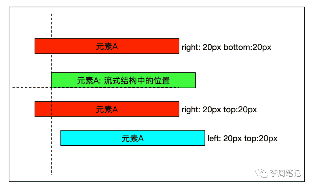 相对布局,相对于元素在流式结构中的位置。可取值: 正数、负数和0.由于可以设置负数和正数,所以bottom: 20px == top: -20px