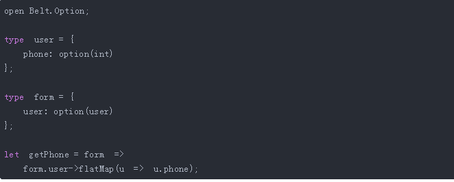 在 ReasonML 中,我们可以使用内置的 option 类型和 Belt 标准库中的辅助函数,而后就能以标准化方式解决可能为空的值。