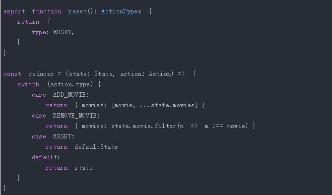 现在,让我们看看向 Reducer 增加新动作的操作。在 TypeScript 中是怎样做的呢?首先你要在类型定义中增加一个新动作,而后以动作创立者的形式编写少量样板,当然不要忘了在 Reducer 中实际解决这种情况,一般这一步都容易被忽略。