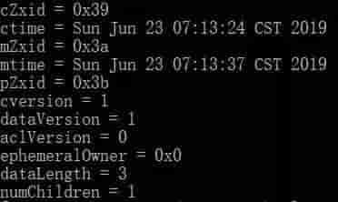 cZxid:创立该节点的zxidctime:该节点的创立时间mZxid:该节点的最后修改zxidmtime:该节点的最后修改时间pZxid:该节点的最后子节点修改zxidcversion:该节点的子节点变更次数dataVersion:该节点数据被修改的次数aclVersion:该节点的ACL变更次数aphemeraOwner:临时节点所有者会话id,非临时的为0dataLength:该节点数据长度numChildren:子节点数
