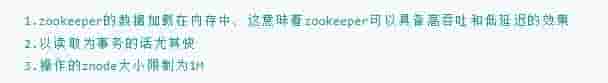 节点数据:存储的基本信息(状态,配置,位置等)节点元数据:stat命令下的少量数据数据大小:限制1M
