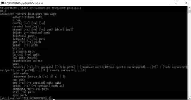 启动bin目录下的zkServer.cmd,再启动zkClient.cmd就可,在我根本不知道该如何进行学习的时候,一般来说输入help,-help,-h这些指令即可以获取到帮助,下图我就是在用户端输入了-help指令