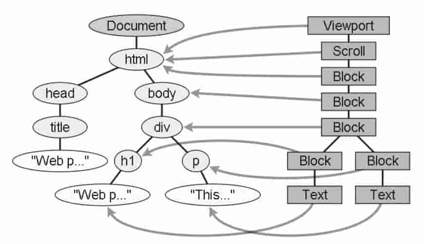 布局树(或者者叫做渲染树、Render Tree)和DOM树大体能逐个对应,两者在内核中同时存在但作用不同。DOM树是HTML文档的对象表示,同时也作为JavaScript操纵HTML的对象接口。Render树是DOM树的排版表示,用以计算可视DOM节点的布局信息(如宽、高、坐标)和后续阶段的绘制显示