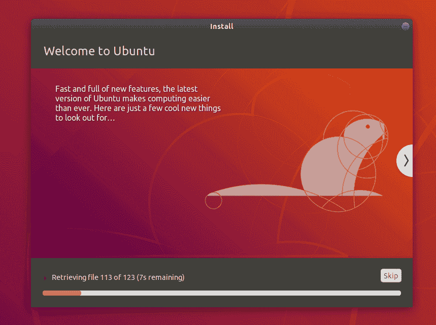 现在,安装程序将在后端完成,而安装窗口将告诉您有关Ubuntu的出色体现。 根据您计算机和网络连接的速度,安装仅需几分钟。