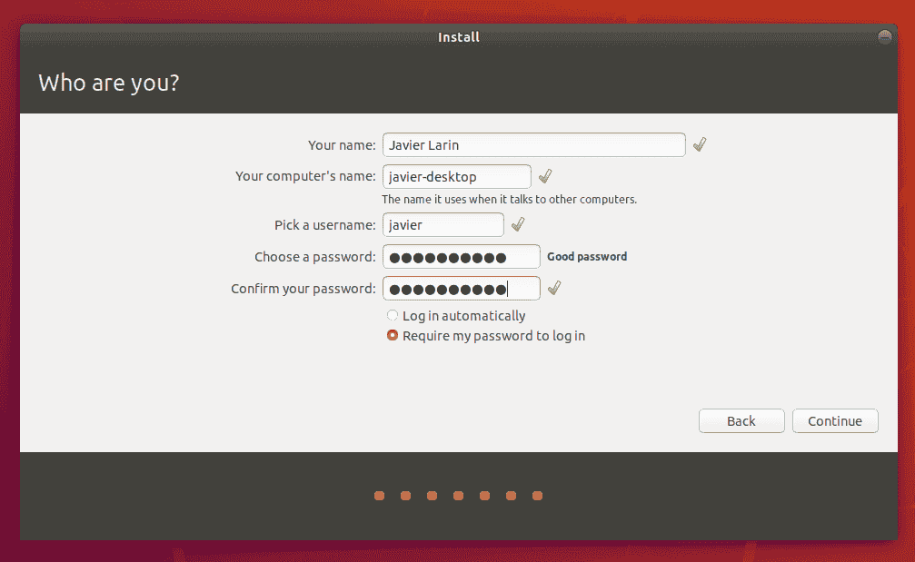 您也可以选择启用自动登录和主文件夹加密。 假如您的计算机是便携式计算机,我们建议禁用自动登录并启用加密。 假如机器丢失或者被盗,这将阻止人们访问您的个人文件。