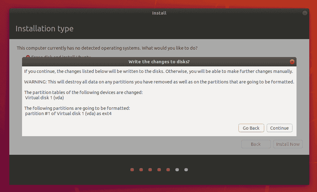 配置存储空间后,点击“立即安装”按钮。 将出现一个小窗格,其中概述了您选择的存储选项,假如详细信息有误,则有机会返回。