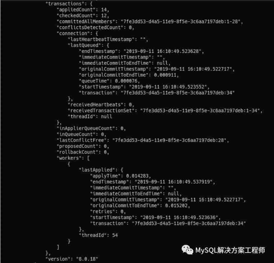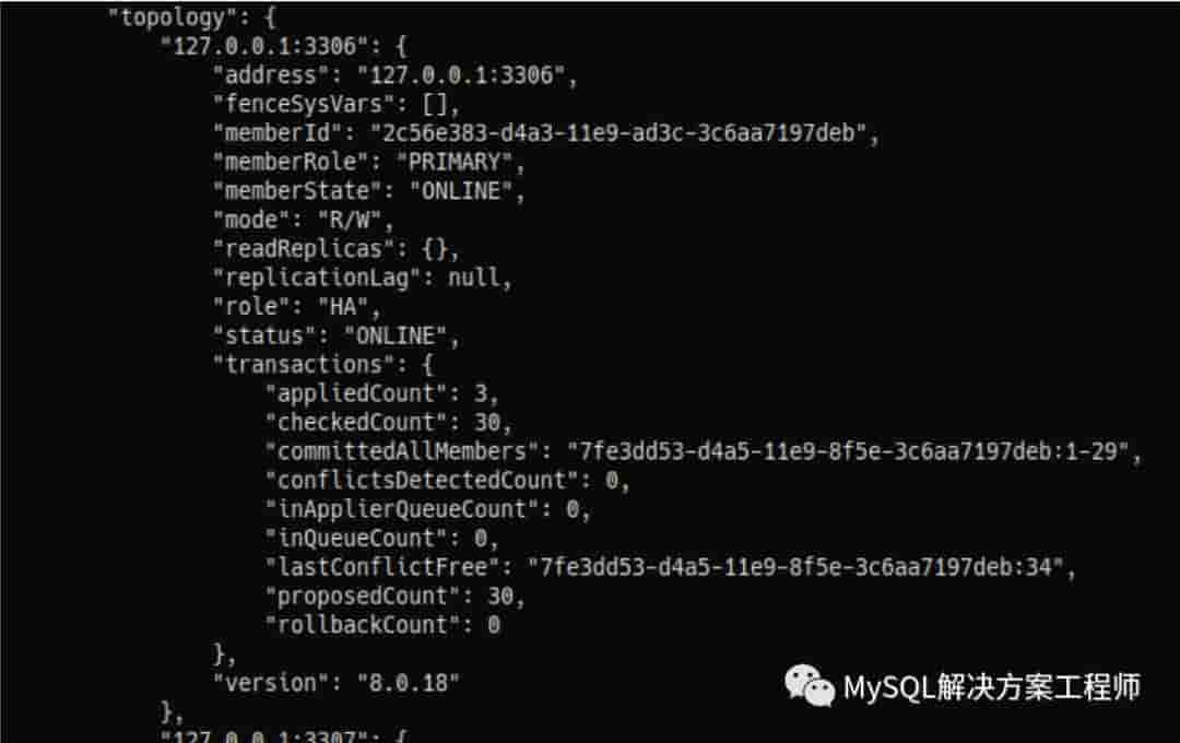 mysqlsh-js>cluster.status({extended:3})可以查看: