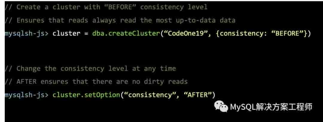 通过MySQL Shell可以配置一致性级别的选项来实现: