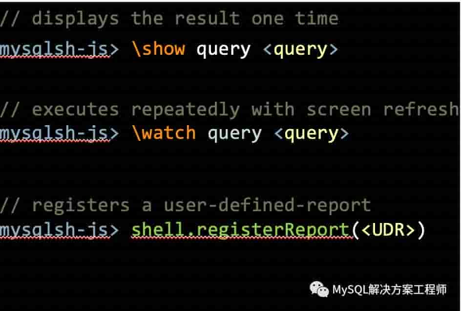 另外,MySQL Shell还具备报表框架。可以使用系统自带的报表或者者客户自己设置报表进行输出。