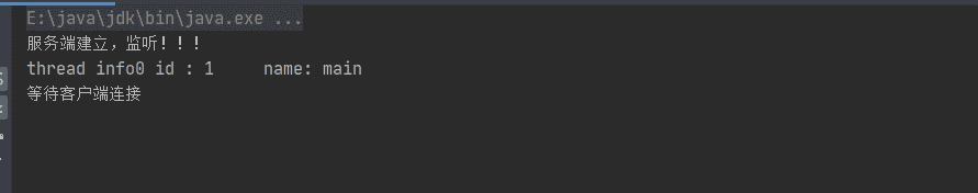 首先我们启动服务端,可以看到如下输出,说明服务端已经被启动起来了,等待用户端连接。