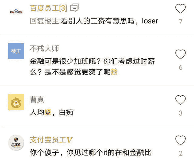 还有某程序员称:据说这两年计算机平均薪资已经超越金融了,楼主竟然拿个平均薪资来说事情。ps:个人看到这个表格,毫无震惊颤抖,毕竟超过了它最上边一行。