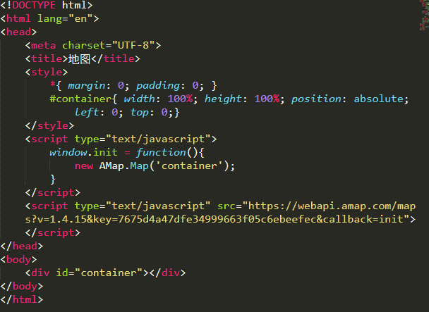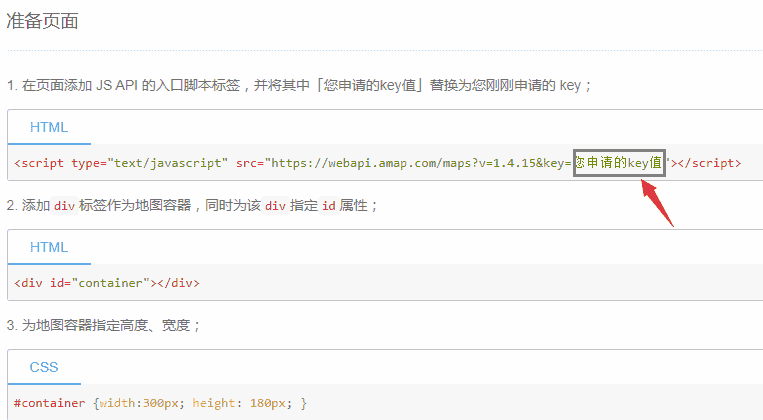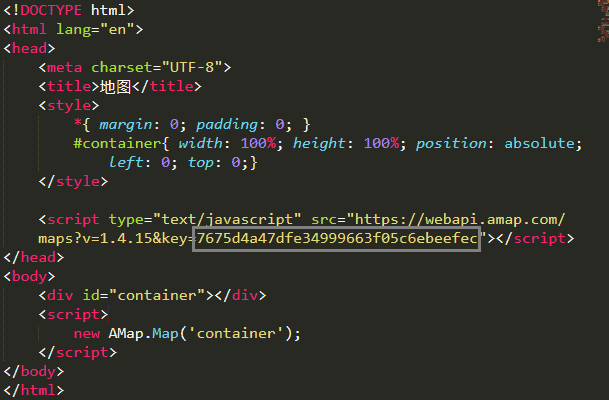 注册完成后,在官网中准备页面中提醒将那里的值替换成我们申请的key值,而后为地图增加容器,再new 一个对象,告诉对象容器是哪个,直接进入小栗子了~