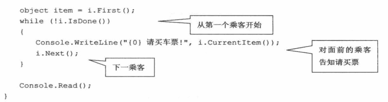 否则,(从前到后、从后到前、从多到少等次序访问的时候,就要借助对象的各个属性来达到遍历的目的,仅仅是遍历这个简单的笼统行为"next, first, current", 却加入那么多对象内部的属性来使得遍历能够进行,这会让代码变得很复杂)