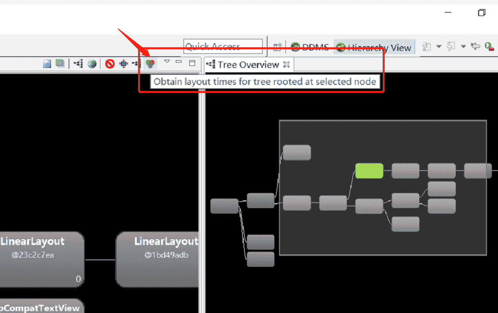如此可以发现,只用三层LinearLayout嵌套,只装载了一个Button,很显然这些LinearLayout都是冗余的。下面利用工具进行分析: