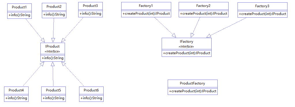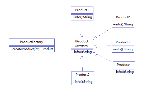 package com.wangjun.designPattern.factory;public class ProductFactory { public static IProduct createProduct(int type) { switch(type) { case 1: return new Product1(); case 2: return new Product2(); case 3: return new Product3(); case 4: return new Product4(); case 5: return new Product5(); default: System.out.println("没有此型号的产品"); return null; } }}