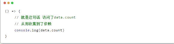 这个函数内部对于响应式数据的访问都可以收集依赖,那么在响应式数据被修改后,就会触发升级。