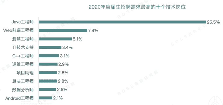 很多同学在大学三年主要学习的主要方向都是Java,大四上学期实习时的工作也是Java。在几个编程语言中,我还是推荐选择Java吧。Java在一,二,三线城市都有很多的岗位,现在80%多的企业都用Java,大型项目也都是Java来做的。