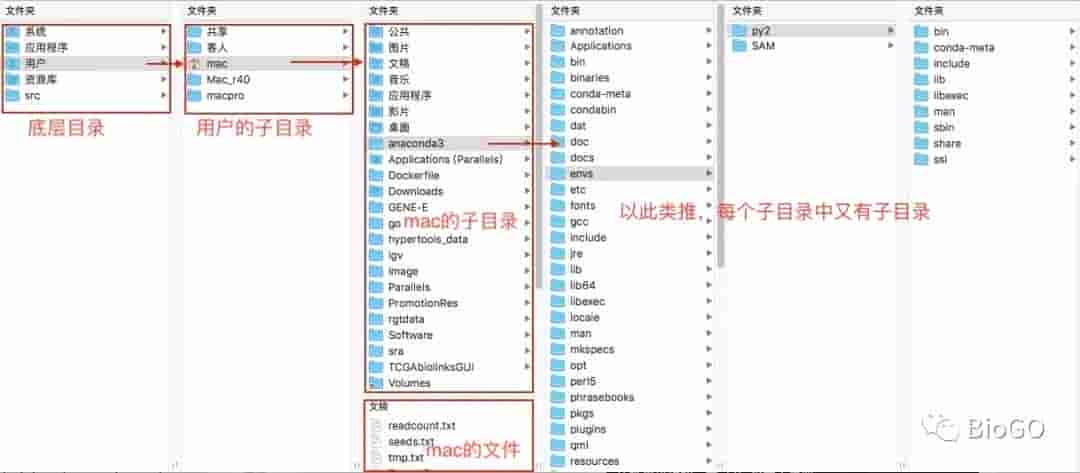 几乎所有的计算机操作系统都是使用目录结构组织文件。日常生活中我们更习惯把目录叫做文件夹。所谓的目录结构,就是在一个目录中存放子目录和文件,而子目录中又可以存放子目录和文件,以此类推形成一个像树一样的文件结构,从根开始向下不断分叉。下边便是一个Mac下的目录系统:
