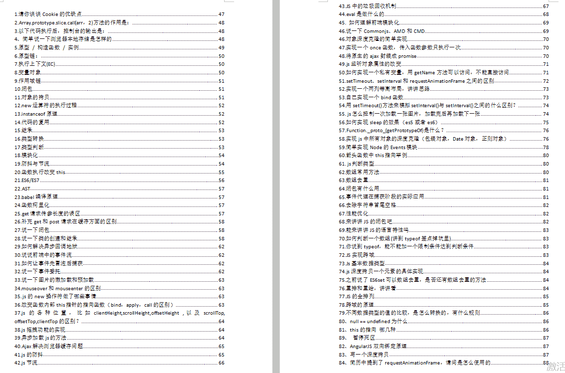 二、JavaScript语法进阶。包括:作用域和闭包、this和对象原型等。相信我,JS语法,永远是面试中最重要的部分。