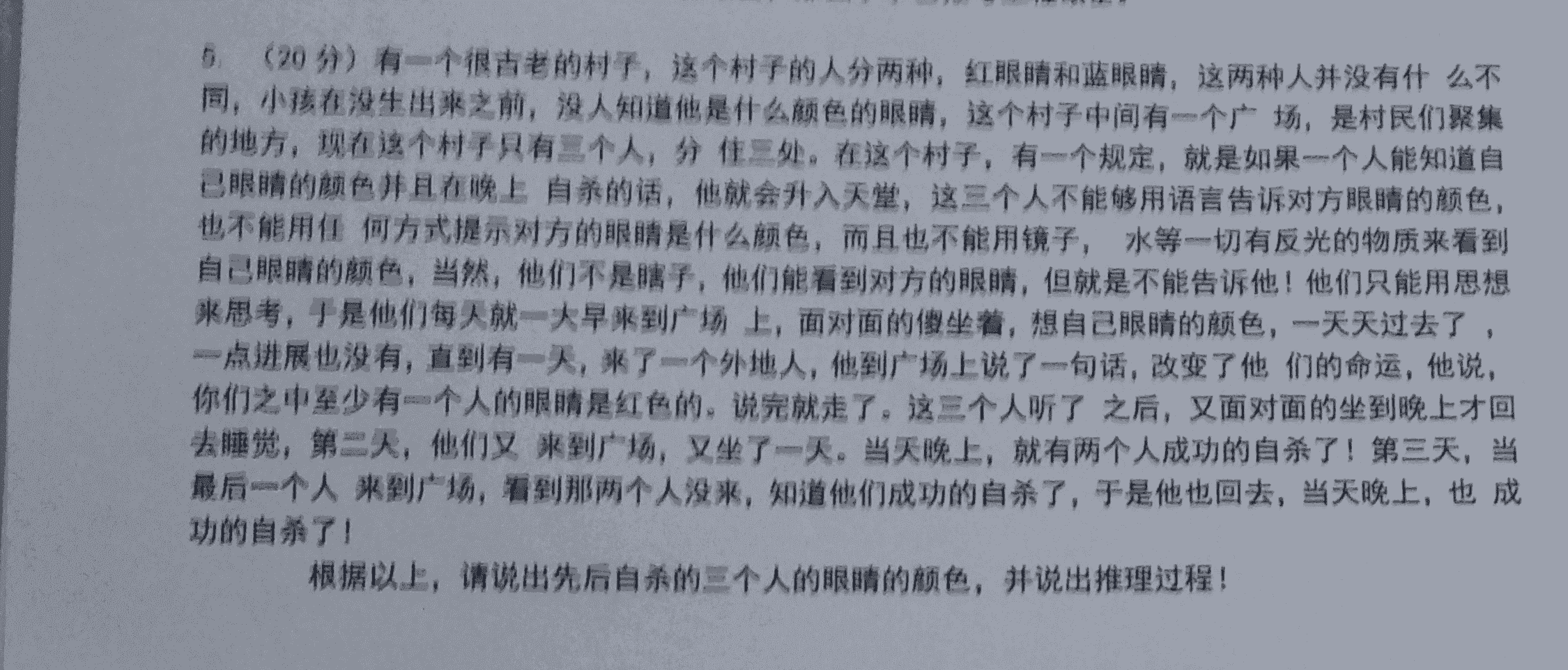 海投期间,我面了两家:平安银行和招商银行,但是没有通过。另外还有一家公司邀请我面试,等我到面试现场,要求先做逻辑推理题,我一看到题目,毫无犹豫地走人了。由于做这种题目简直白费青春,我截取其中一道题,你们感受一下: