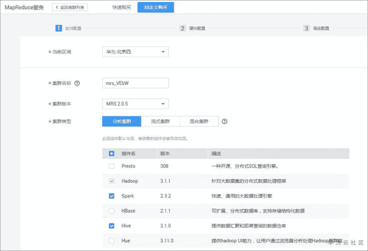 注:下图以新版自己设置购买界面为例,需要在“购买集群”界面点击右上角的“点击体验新版”,而后选择“自己设置购买”。