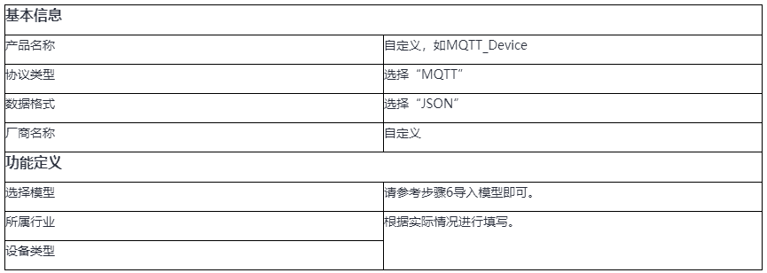 5. 单击右上角的“创立产品”,创立一个基于MQTT协议的产品,填写参数后,单击“确认”。