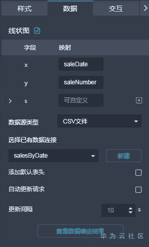 配置 “x”为 “saleDate”, “y”为 “saleNumber”。