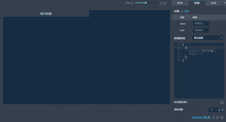 6. 在右侧“数据”面板修改静态数据中“value”的值为“每日销量”。