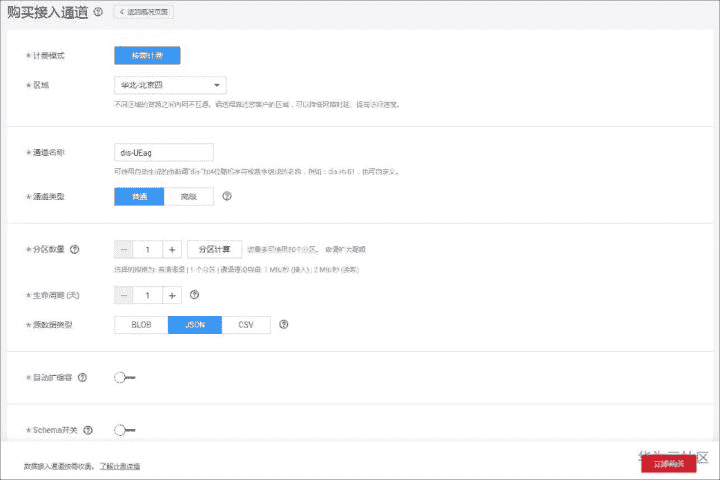 2. 单击“立即购买”,购买接入通道,以下配置仅为样例。