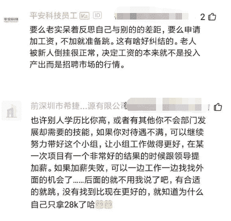 这两位网友总结得比较全面,要么反思差距,要么带好团队,要么申请加薪,要么准备跳槽,假如找不到更好的工作,就知道为什么自己只能拿28K了。