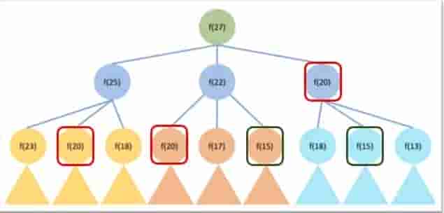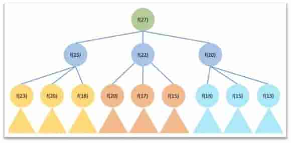 要算f(27),就要递归f(25)、f(22)、f(20),而后下边依次递归……(三角形表示)。