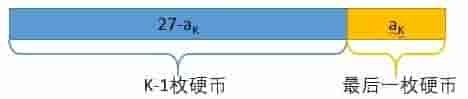 找出不影响最优策略的最后一个独立角色,这道问题中,那枚最后的硬币“aK”就是最后一步。把aK提取出来,硬币aK之前的所有硬币面值加总是27- aK由于总体求最硬币数量最小策略,所以拼出27- aK 的硬币数也肯定最少(重要设定)。