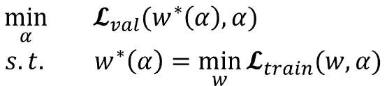 网络搜索的第一步是对模型结构,optimizer,loss进行初始化。文中定义了几种operation,代码中的定义在operation.OPS, 两种cell在代码中的定义是genotypes.PROMITIVES. 参数Alpha在代码中定义为arch_parameters()={alphas.normal, alphas.reduce}. 在搜索过程中,train data被分成两部分,train patch用来训练网络参数W而validation patch用来评估搜索到的网络结构。在代码中,搜索过程的核心部分在architect.step()。网络搜索的目标函数就是让validation在现有网络的loss最小,文章中公式(3)给出了objective: