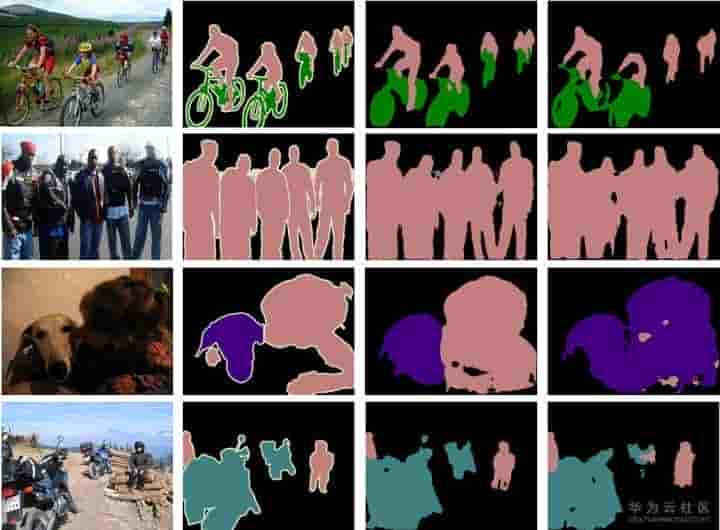 下图中直观比照了ground truth(第二列),deeplabv3+(第三列)和Auto-DeepLab-S(第四列)的分割结果。与上面的mIoU一致,DeepLabv3+的分割结果要比Auto-DeepLab更精准少量,尤其是在边缘。对于简单的图像案例,两者分割结果相差无几,但是在较难的情况下,Auto-DeepLab会有很大误差(在第三个案例中,Auto-DeepLab将女孩识别成狗)。