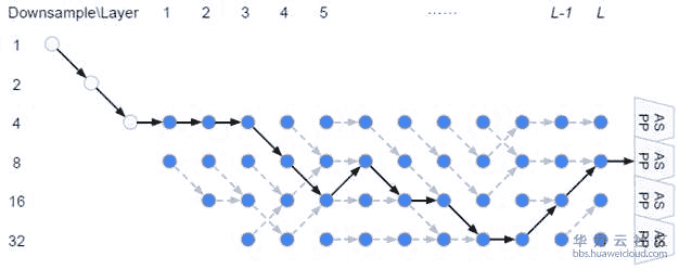 从上面公式可以看出,W和{Alpha,Beta}要分别计算和升级。所有的weight都是非负数。Alpha的计算方式仍然是ArgMax,而计算Beta用了经典的贪心算法Viterbi算法。下图给出的宏观网络结构是基于Cityscapes搜索到的结果,对应代码中的backbone是[0,0,0,1,2,1,2,2,3,3,2,1], 数字代表downsample倍数。在模型中,每一个cell中的node由两个路径组成,如图右。