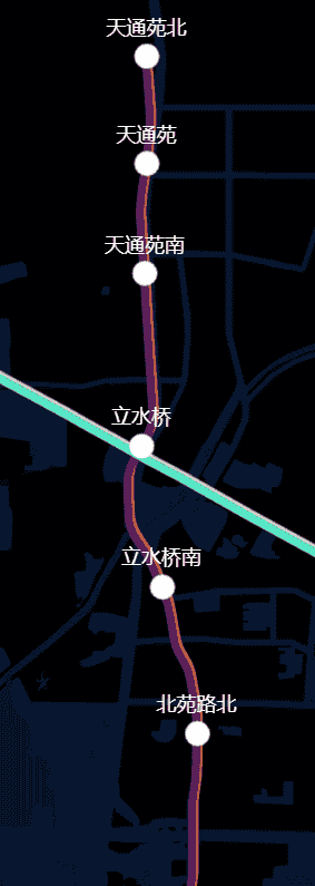 这地铁线,两站之间是有多个坐标点,而后通过高德地图的矢量图形中的折线 Polyline 连接绘制而成。