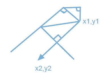 关键代码就是上面,为了保障生成的坐标点在一侧,里面就还需要判断下是向线是左下方斜还是右下方斜。