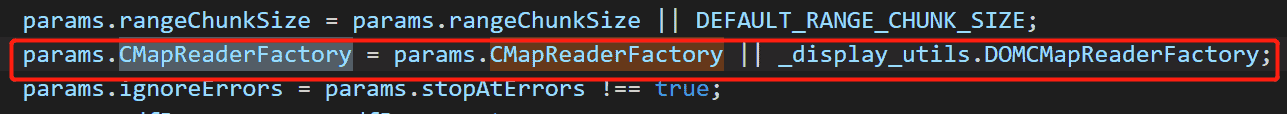 params.rangeChunkSize = params.rangeChunkSize || DEFAULT_RANGE_CHUNK_SIZE; params.CMapReaderFactory = params.CMapReaderFactory || _display_utils.DOMCMapReaderFactory; params.ignoreErrors = params.stopAtErrors !== true; params.fontExtraProperties = params.fontExtraProperties === true; params.pdfBug = params.pdfBug === true; // 处理pdf.js无法完全显示pdf文件内容的问题 params.cMapPacked = true params.cMapUrl = window.location.origin + "/pdf/web/cmaps/"