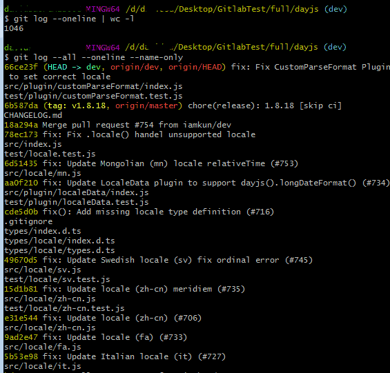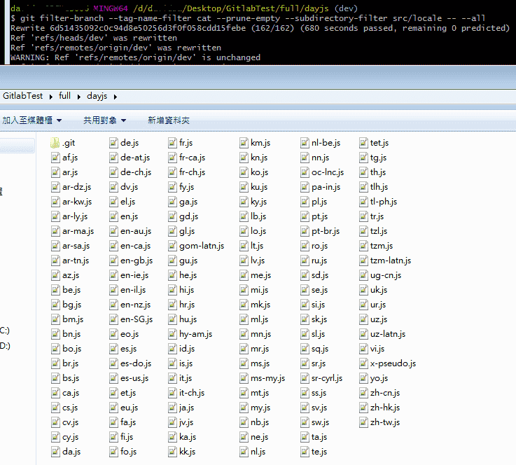 现在只有原来在 dayjs/src/locale 里面的文件被修改的提交记录被保留,其它的都丢掉了。